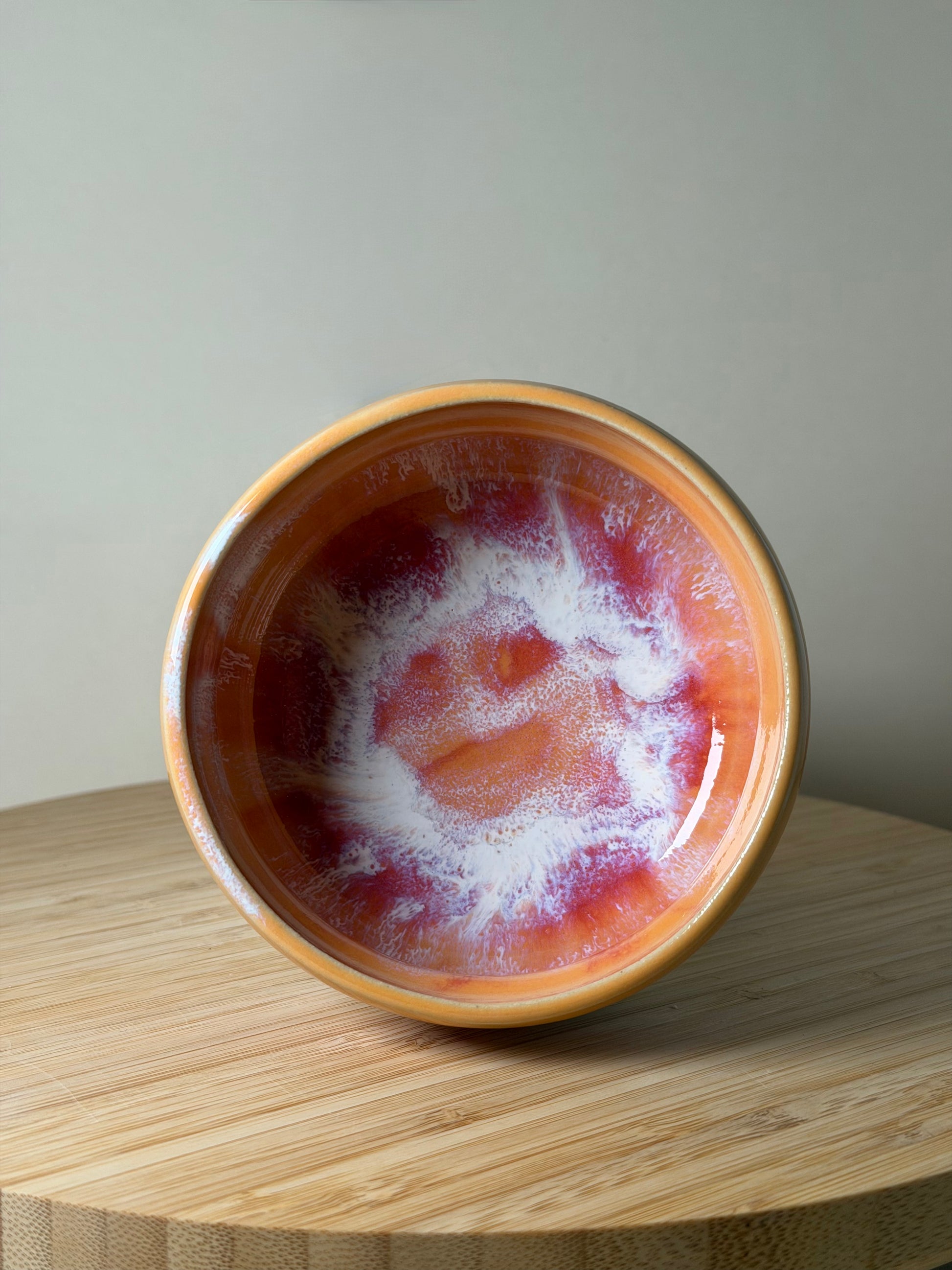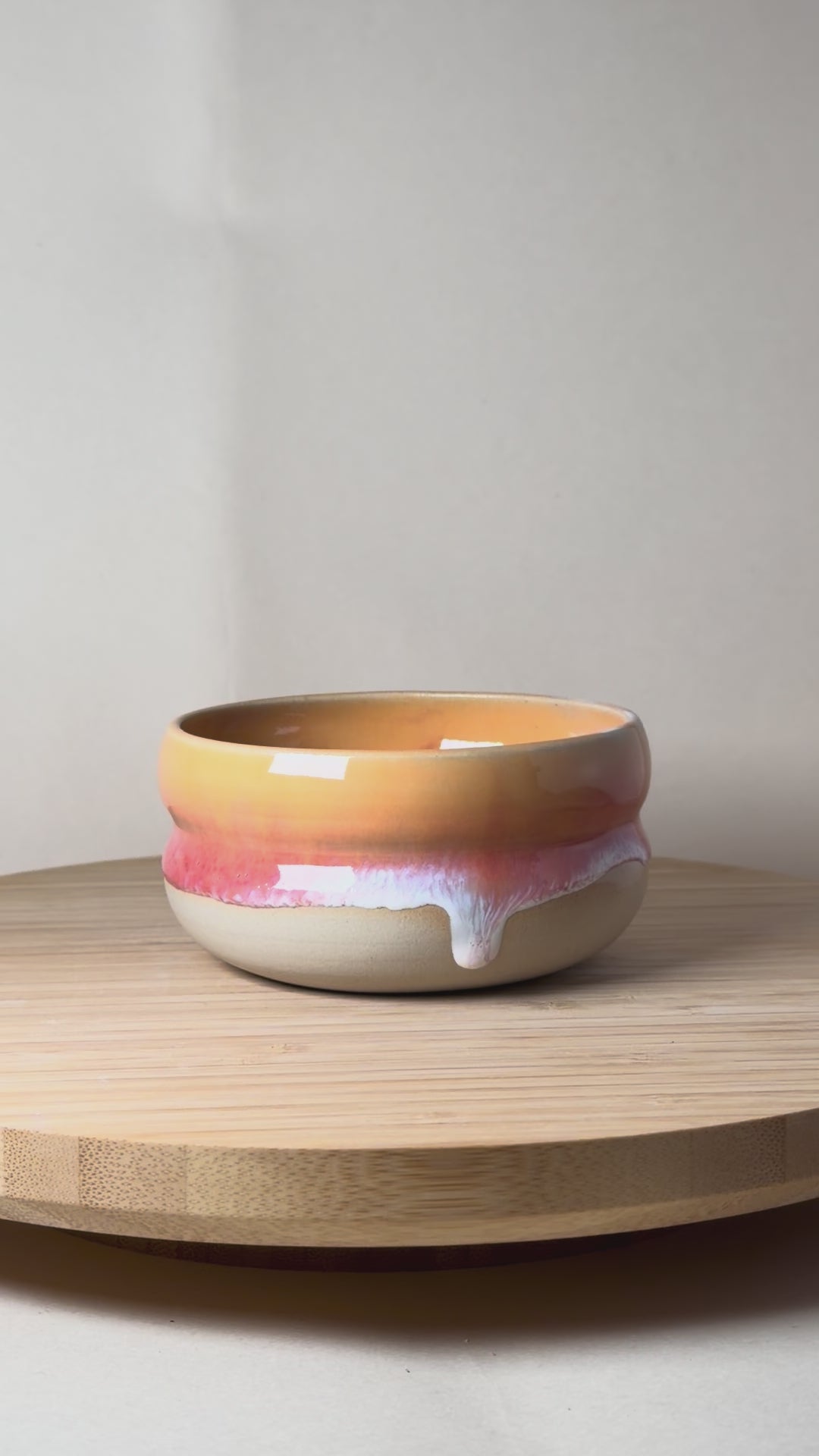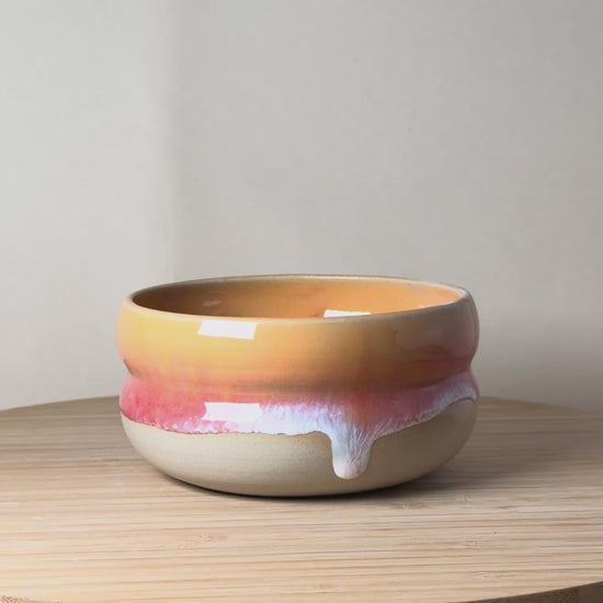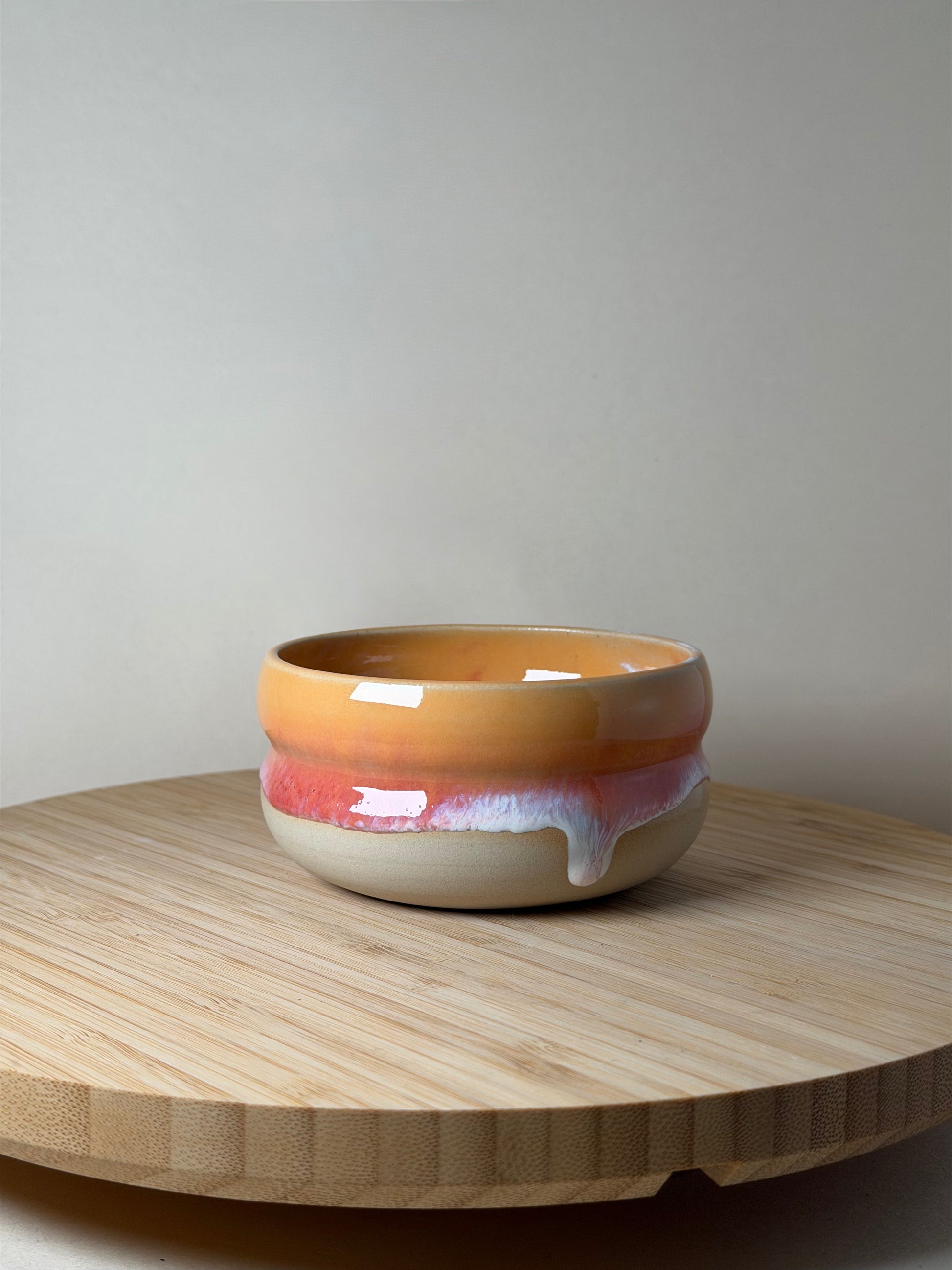 Diese handgedrehte Bubble-Schale aus hellem Steinzeug gehört zur Girasole-Kollektion – einer warmen Glasur in Gelb- und Rosatönen, die an einen sonnigen Abendhimmel in Italien erinnert. Die charakteristische Bubble-Form entsteht in liebevoller Handarbeit an der Drehscheibe und macht jede Schale zu einem kleinen Hingucker mit weicher, organischer Silhouette.