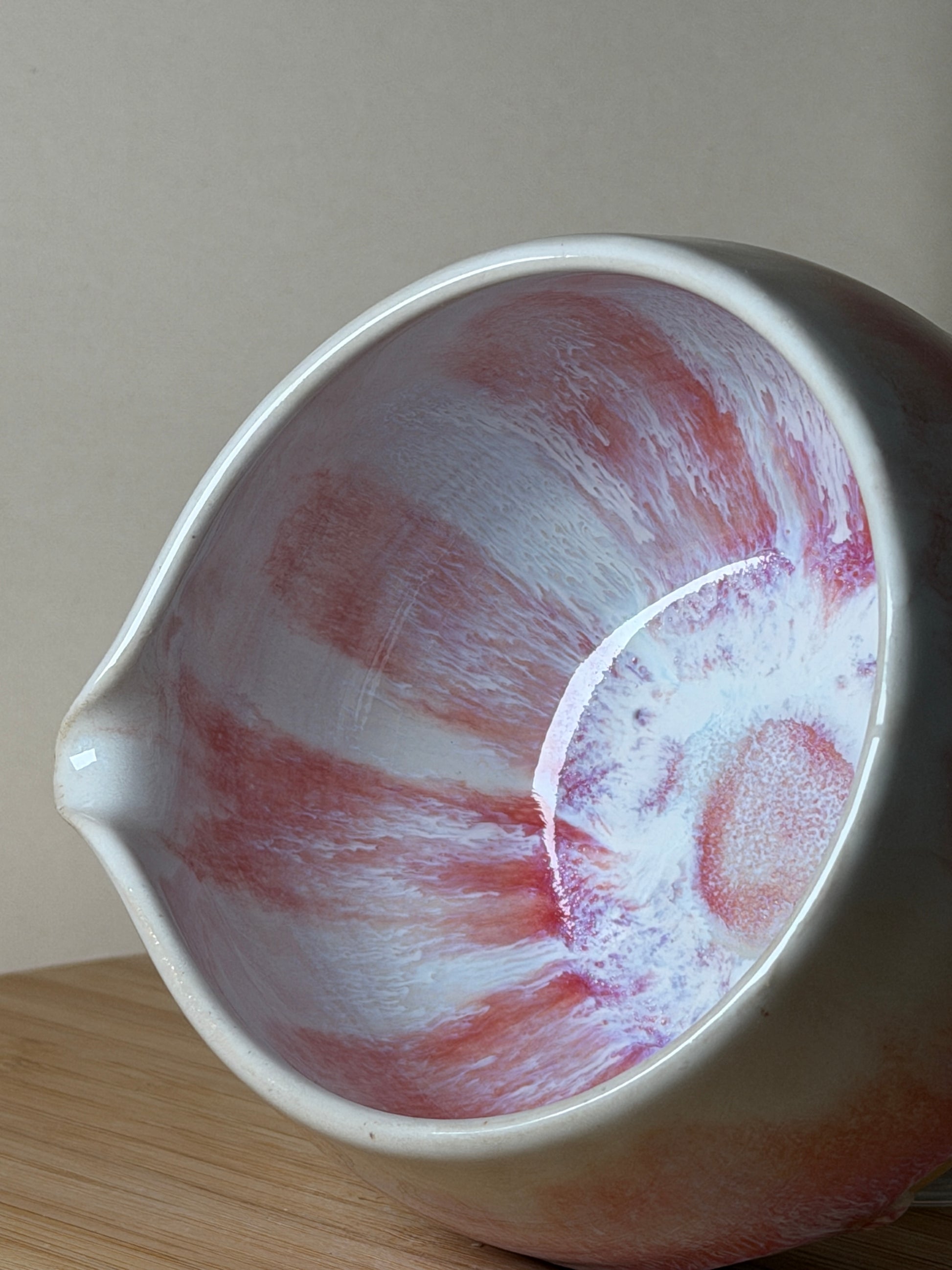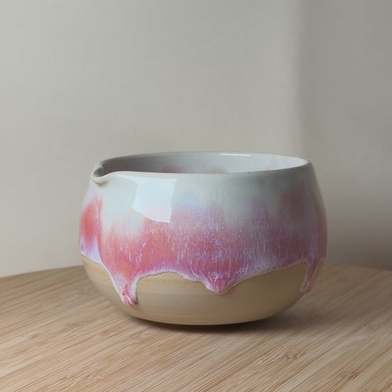 Jede meiner Matchaschalen wird mit viel Liebe und Sorgfalt auf der Drehscheibe aus hellem Steinzeug gefertigt. Die Glasur „Magnolia“ verbindet zarte Weiß- und Rosatöne und erinnert an die ersten Blüten des Frühlings – elegant, sanft und zeitlos schön.